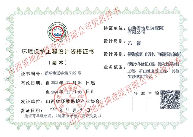 環境保護工程研究院2023年成立以來,承擔了太原市主城區區域地質災害危險性評估、山西省陽曲縣地質災害“隱患點+風險區”雙控建設項目、山西省武鄉縣、沁源縣地質災害“隱患點+風險區”雙控建設項目、山西省地質災害氣象風險短臨預警模型研究、山西省汾河中上游山水林田湖草生態保護修復工程試點太原市萬柏林區西山九院小虎峪生態保護修復(地質災害治理)項目監測、山西省汾河中上游山水林田湖草生態保護修復工程試點太原市萬柏林區玉門河生態保護修復(地質災害治理)項目監測、嵐縣太興鐵路社科集運站鐵路專用線工程項目節約集約用地論證分析專章等項目。
